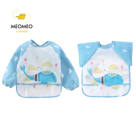 Áo yếm ăn dặm BLW cao cấp [Chống thấm nước, có máng chứa thức ăn rơi]
