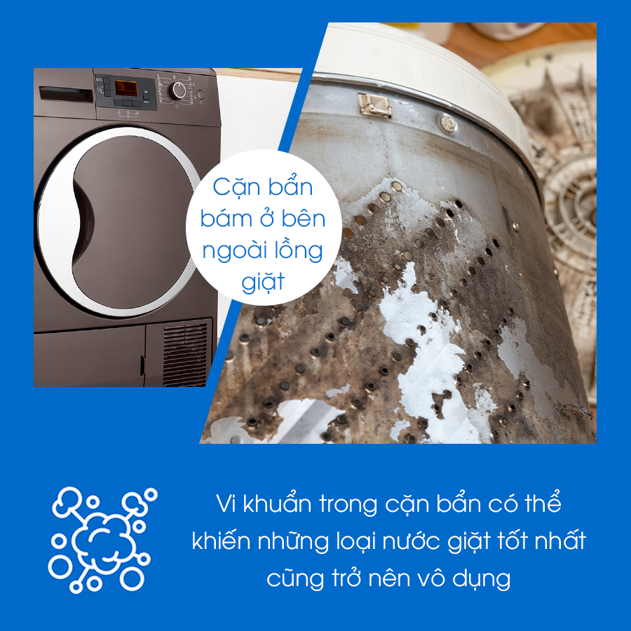 Hỗ trợ làm sạch cặn bột giặt và mảng bám trong lồng giặt