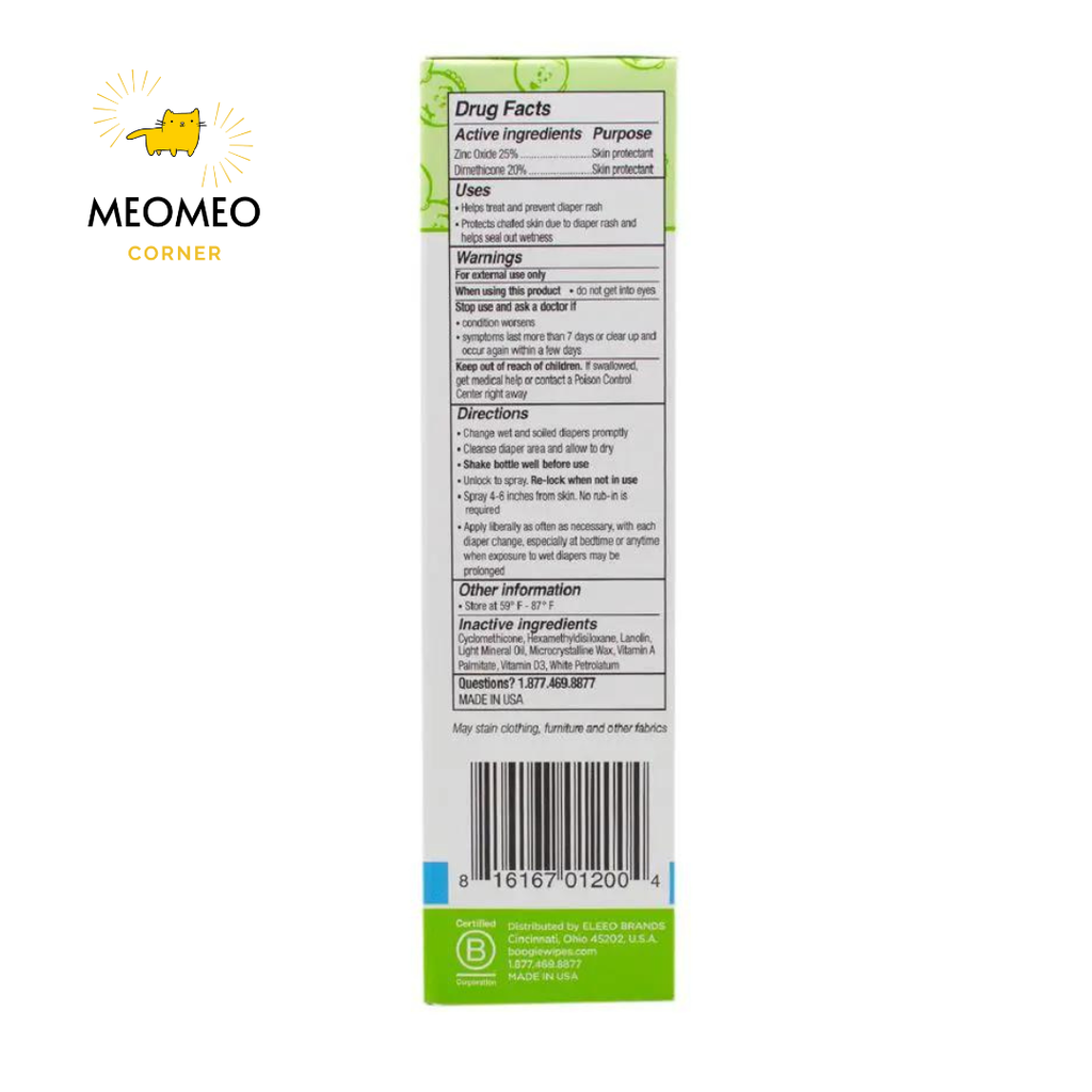 Xịt Hăm Tã Boogie Bottoms Diaper Rash Spray Mỹ 49ml